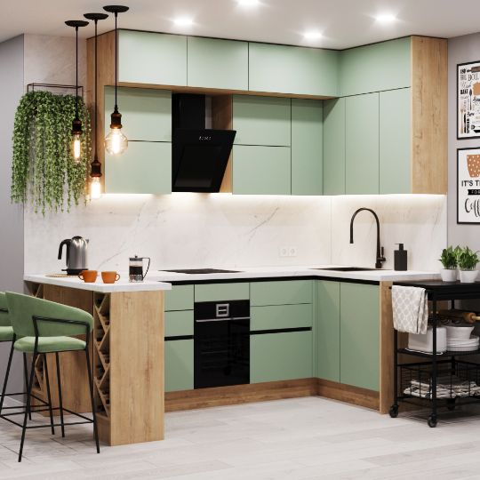 Фасады: МДФ Р010 Матовая мята/Дуб вотан